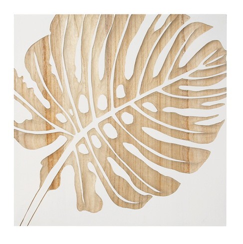 ウッド スカルプチャー アート Sサイズ モンステラ ホワイト 絵画 壁掛け 壁飾り インテリア 油絵 花 アートパネル ポスター 絵 額入り リビング 玄関