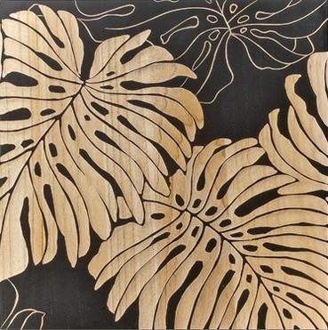 ウッド スカルプチャー アート Sサイズ モンステラリーブスB ブラック 絵画 壁掛け 壁飾り インテリア 油絵 花 アートパネル ポスター 絵 額入り リビング 玄関