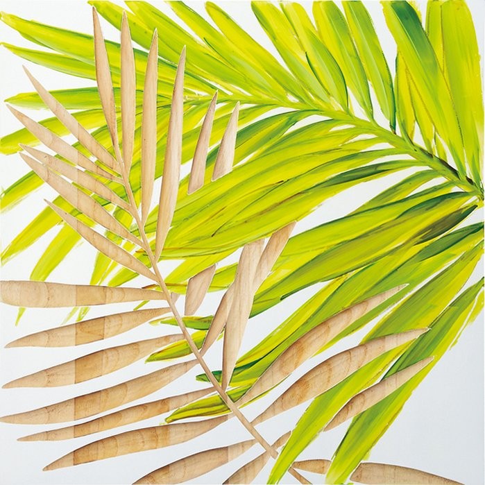 壁飾り ウッド スカルプチャー アートパームリーフ(ホワイト&グリーン)