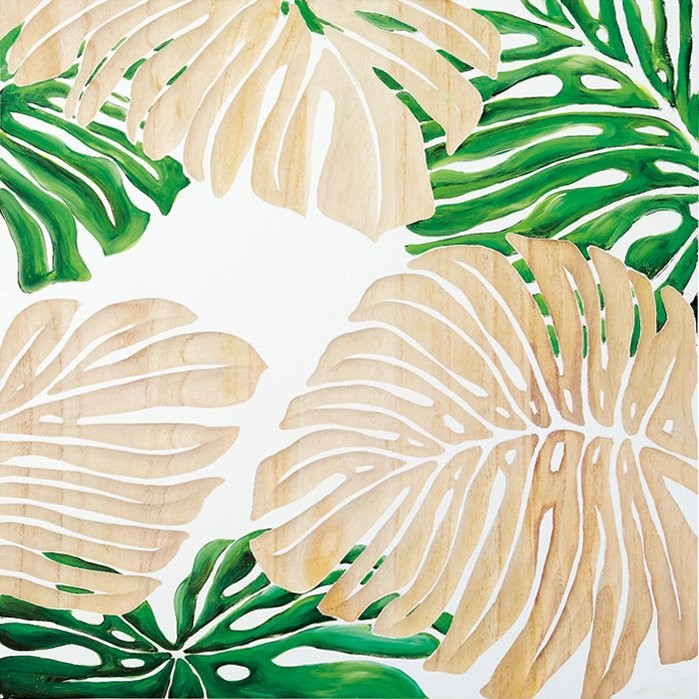 壁飾り ウッド スカルプチャー アートモンステラ(ホワイト&グリーン) 絵画 壁掛け 壁飾り インテリア 油絵 花 アートパネル ポスター 額入り リビング 玄関