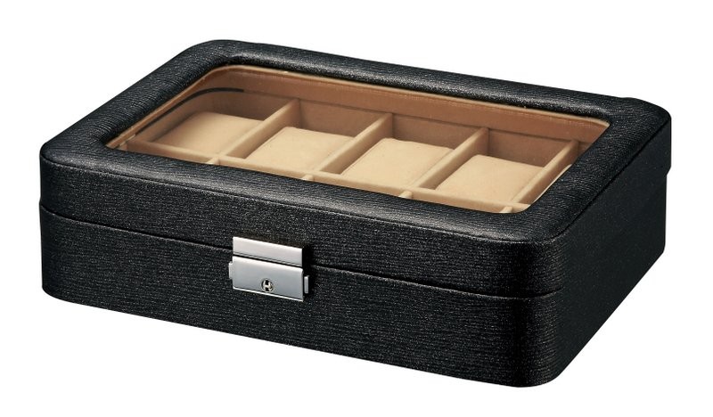 腕時計を収納できるコレクションボックスです。さりげなくラメの入ったレザーを使い他にはない高級感ある仕上がり。上部には中が一目で分かるよう透明なガラスを入れて使いやすさにもこだわりました。腕時計を美しく収納できるウォッチボックスと、ウォッチボックスにアクセサリーも収納できる充実機能のウォッチ&ジュエルボックス。