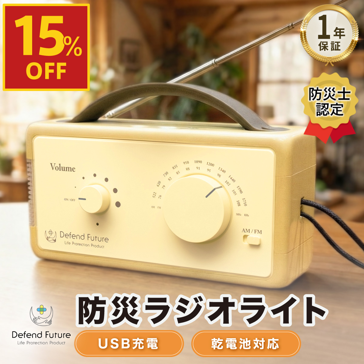 【期間限定15%off】防災ラジオ ライト 充電式 小型 FM / AM 対応 スマホ 充電 懐中電灯 LEDライト SOSアラート 多機能 Defend Future