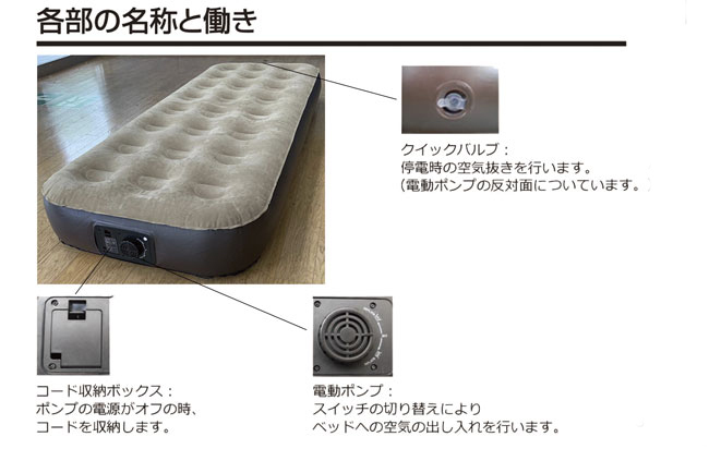 電動ポンプ内蔵 エアーベッド コンパクト●特徴