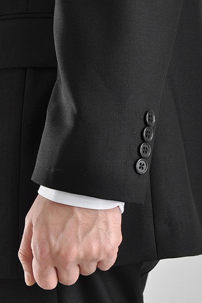 2ツボタンのシングルフロントでノッチドラペル。 バックはセンターベント、裏地は背抜き仕立て。