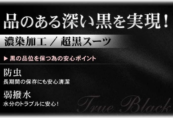 生地には濃染加工を施し、品のある深い黒を追及しております。