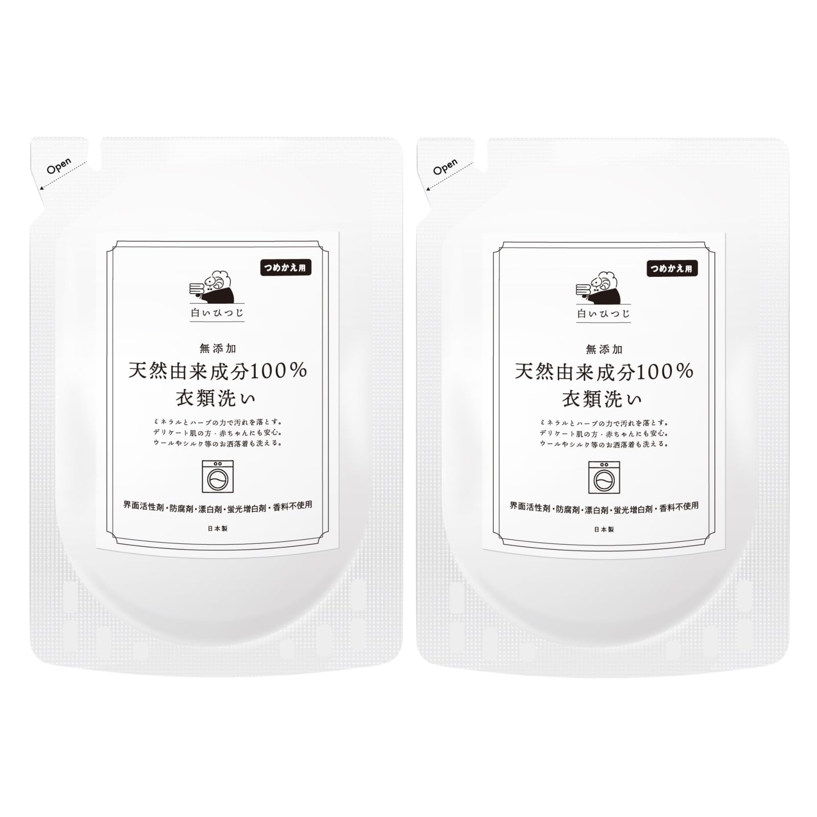(2個セット)白いひつじ 天然由来成分100%衣類洗い350mL 無添加 化学物質不使用 つめかえ用