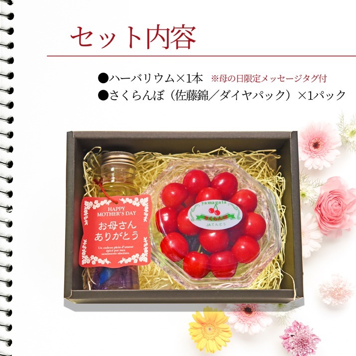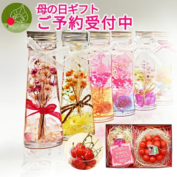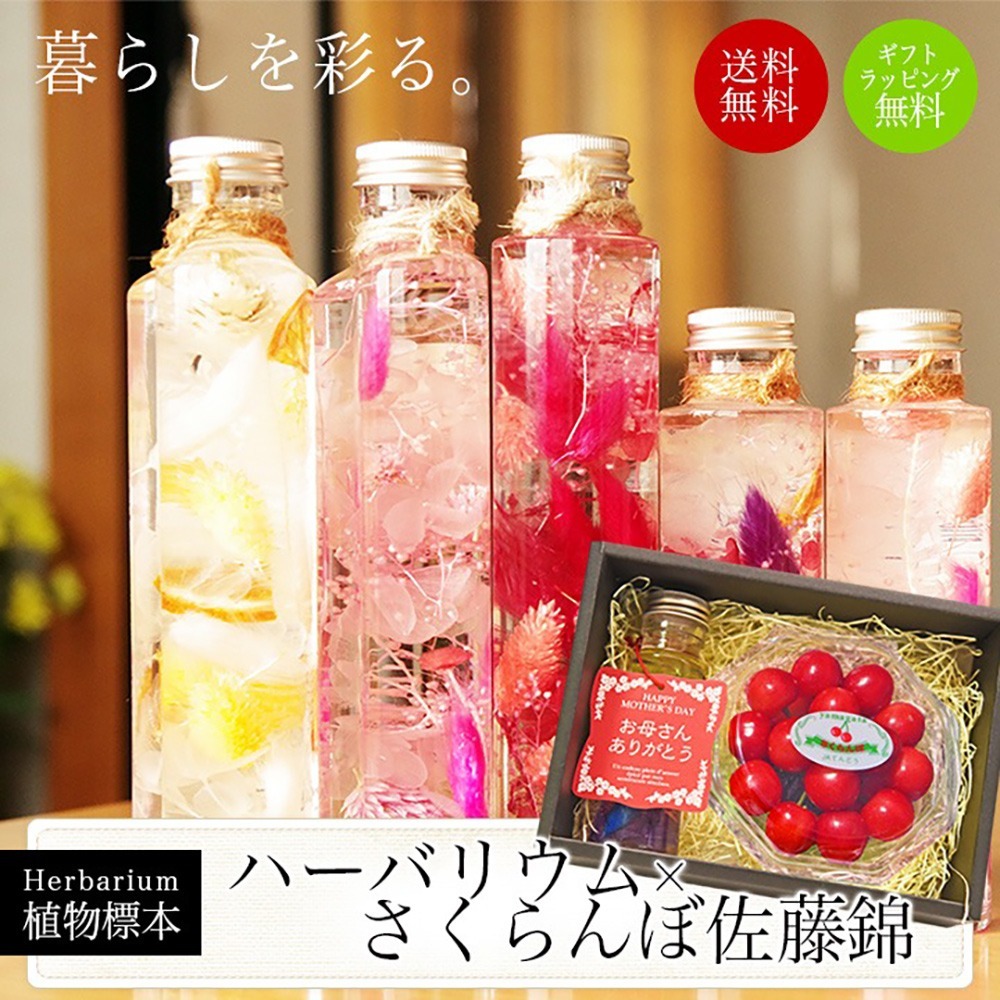 母の日 ギフト ハーバリウム & さくらんぼ 佐藤錦 秀品 L玉 ダイヤモンドパック 100g ギフトセット 送料無料