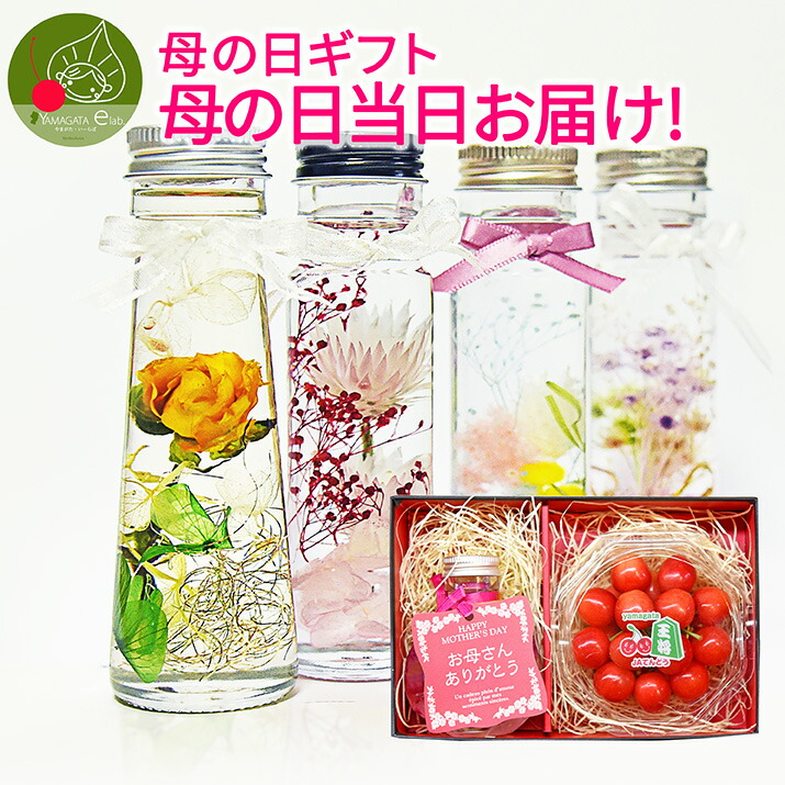 母の日 ギフト ハーバリウム & さくらんぼ 佐藤錦 秀品 L玉 100g ギフトセット 山形県産