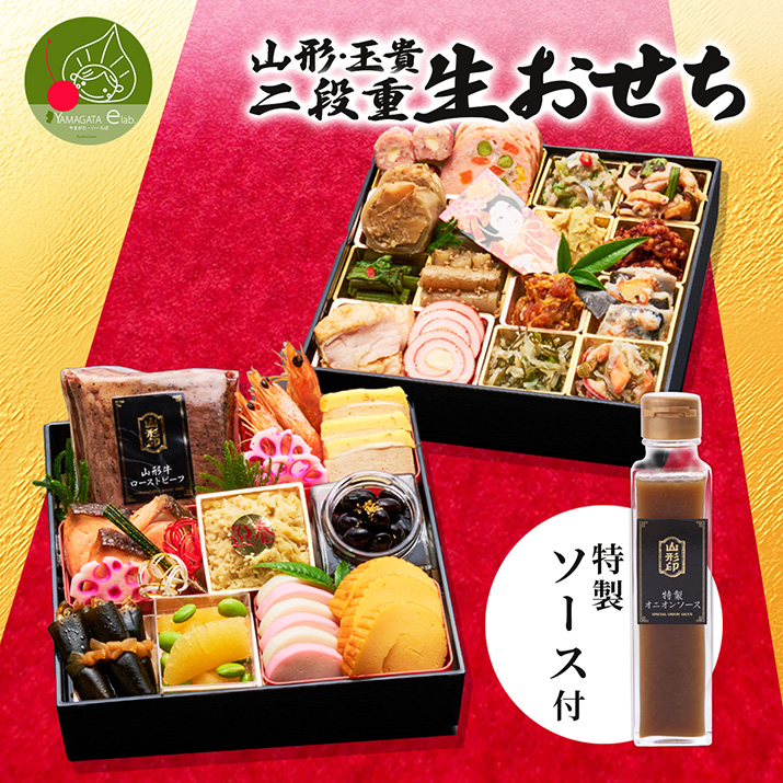 山形 玉貴生おせち 二段重 24品目 冷蔵便 送料無料 新年のギフト 御節 出来立て 鮮度抜群
