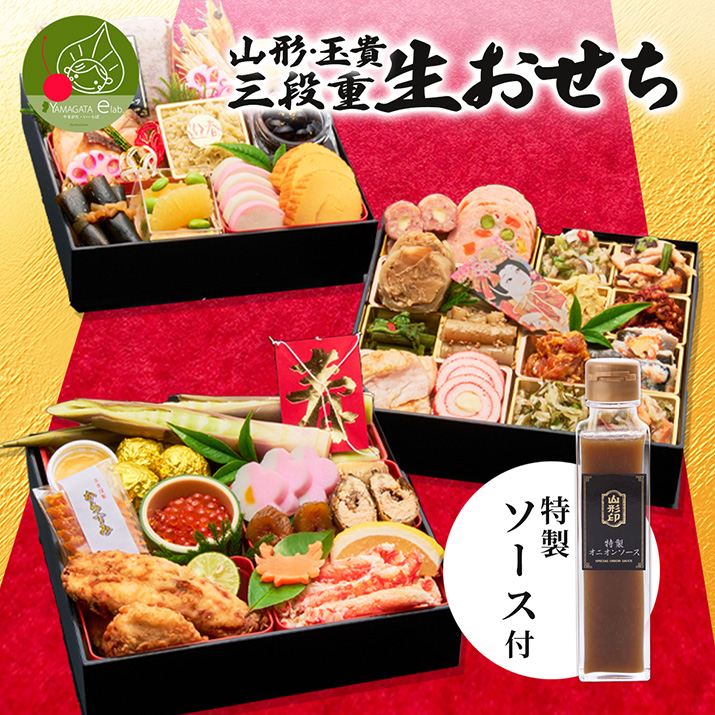 山形 玉貴生おせち 三段重 34品目 冷蔵便 送料無料 新年のギフト 御節 出来立て 鮮度抜群 福袋