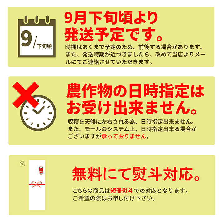 ●発送時期 : 9月下旬頃から下旬頃にかけて発送(ご注文順に順次発送)