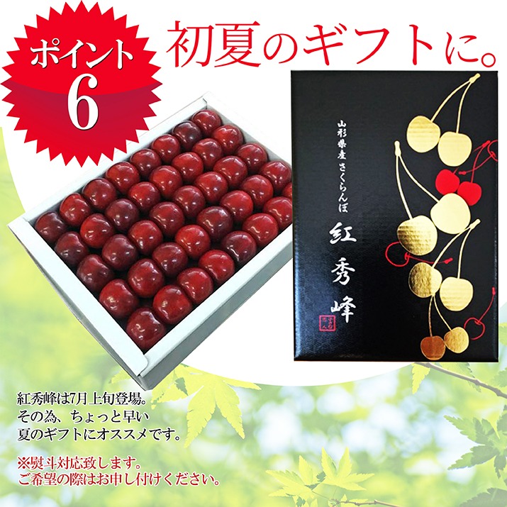 お中元 さくらんぼ 紅秀峰 2L玉 500g 鏡詰め 山形 特秀 2026 山形県産 サクランボ 化粧箱入 産地直送 送料無料 ギフト 贈り物 贈答 お中元 果物