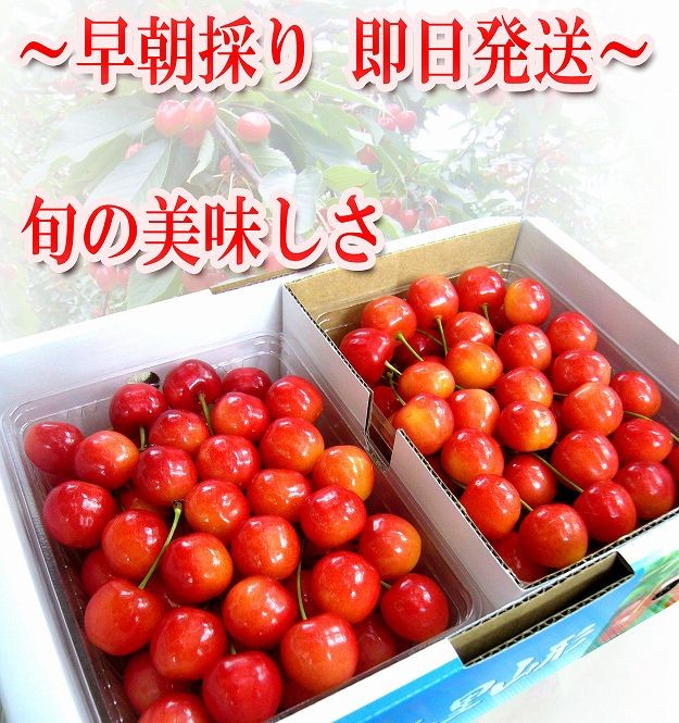 ●さくらんぼは、非常に繊細な果物でございます。検品を十分にし、万全な状態で出荷しております。果物の性質上、輸送中の振動などで、若干の表面のこすれや果汁漏れがある場合がございます。何卒、その旨ご理解 ご了承下さいました上でご購入頂きます様、よろしくお願いします。