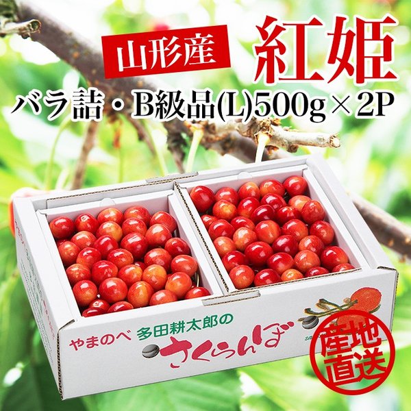 さくらんぼ 紅姫 L玉 500g×2P バラ詰 山形 特秀 2026 山形県産 サクランボ 特選 大粒 化粧箱入 お中元 ギフト 贈り物 贈答 送料無料 果物 フルーツ