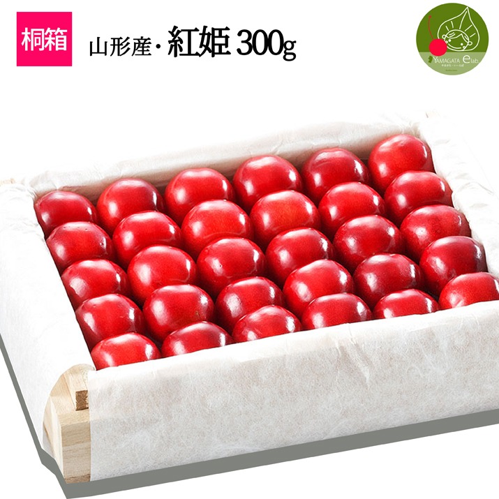 さくらんぼ 紅姫 2-3L玉 300g 桐箱 山形 特秀 2026 山形県産 サクランボ 特選 大粒 化粧箱入 手詰め お中元 ギフト 贈り物 贈答 送料無料 果物 フルーツ