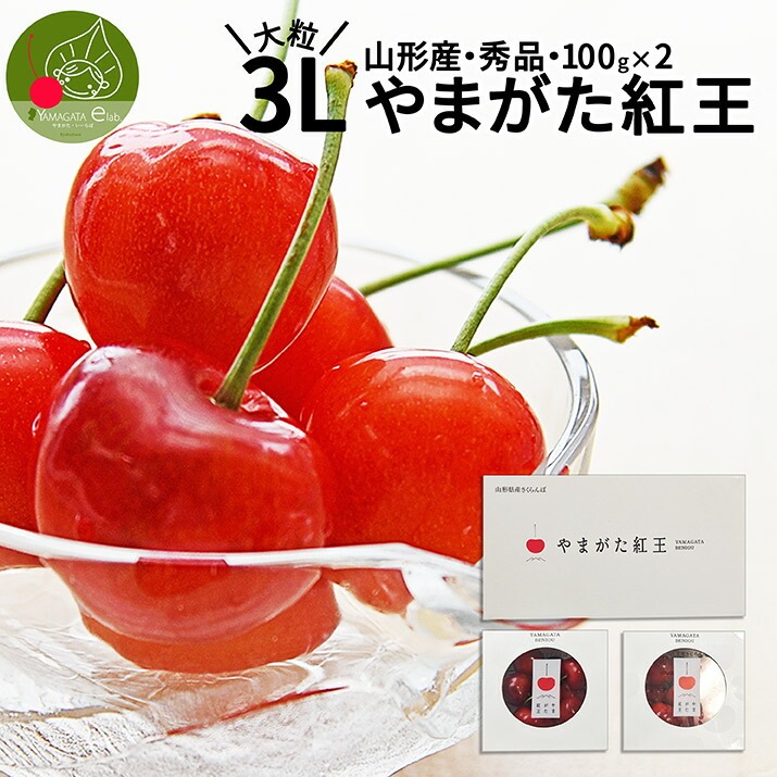 山形県産 さくらんぼ 紅王 秀品 3L 100g×2パック ギフト箱入り大粒 2L より大きい 化粧箱入 産地直送 送料無料 フルーツ 果物 お中元