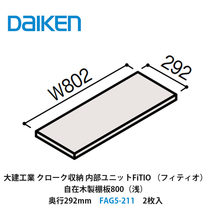 大建工業【内部ユニット FiTIO(フィティオ)自在木製棚板800(浅)・奥行292mm FAG5-211 2枚入】ダイケン DAIKEN 旧カンタナ