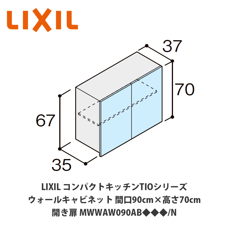 送料無料でお届け!LIXIL【コンパクトキッチンTIOシリーズ ウォールキャビネット(吊戸棚) 間口90cm×高さ70cm MWWAW090AB◆◆◆/N】