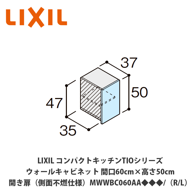 送料無料でお届け!LIXIL【コンパクトキッチンTIOシリーズ ウォールキャビネット(吊戸棚)側面不燃仕様 間口60cm×高さ50cm MWWBC060AA◆◆◆/(R/L)】