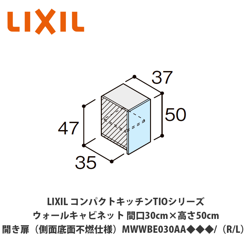 送料無料でお届け!LIXIL【コンパクトキッチンTIOシリーズ ウォールキャビネット(吊戸棚)側面・底面不燃仕様 間口30cm×高さ50cm MWWBE030AA◆◆◆/(R/L)】