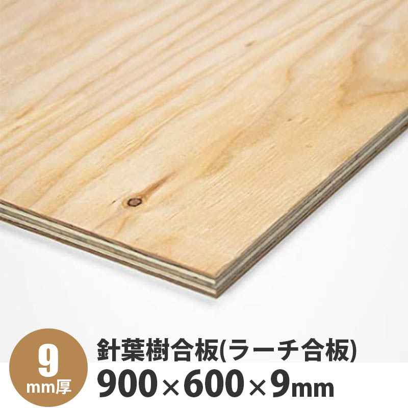 針葉樹合板(ラーチ合板) 900×600×9mm 1枚入