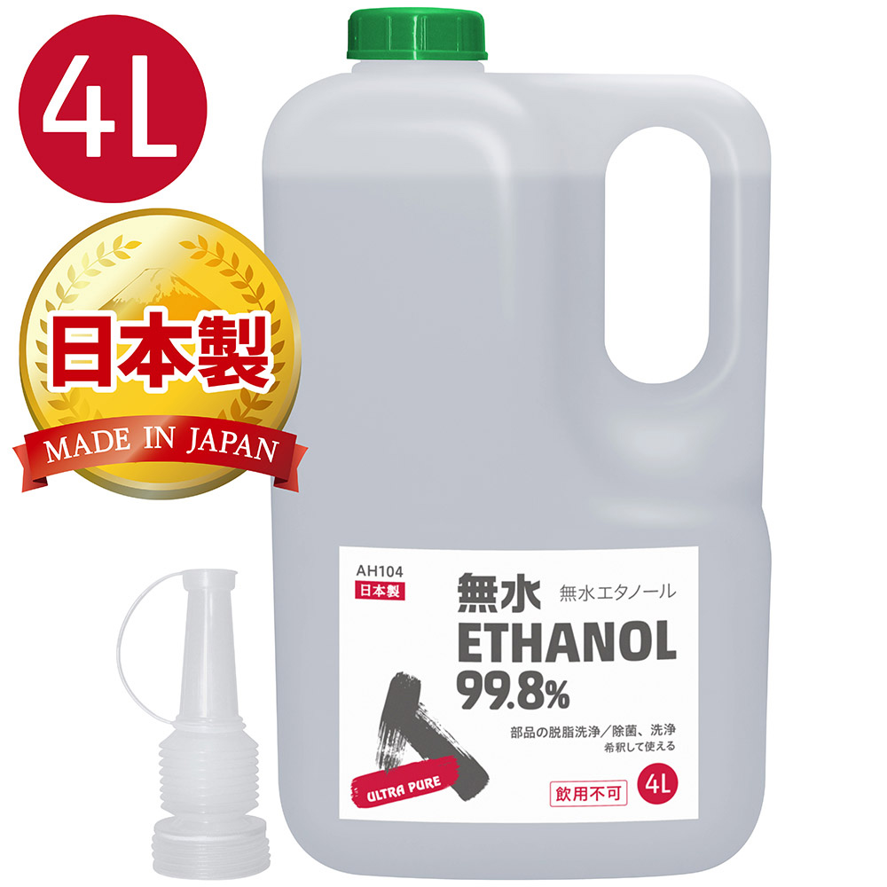 AZ 無水エタノール 99.8% 4L (発酵アルコール99.8vol%以上 ) 日本製 ULTRA PURE