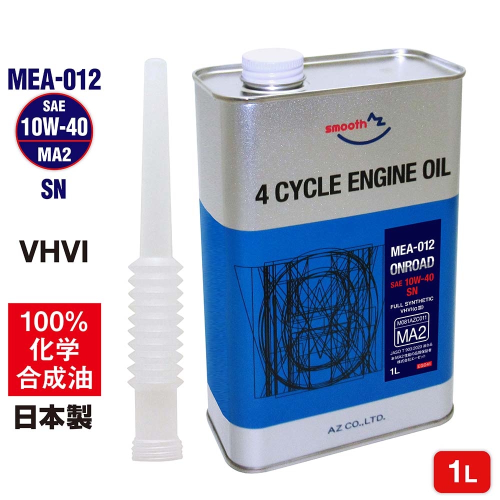 AZ バイク 4サイクルエンジンオイル 1L/10W-40/MA2規格 (MEA-012/ONROAD) 100%化学合成油 モーターオイル