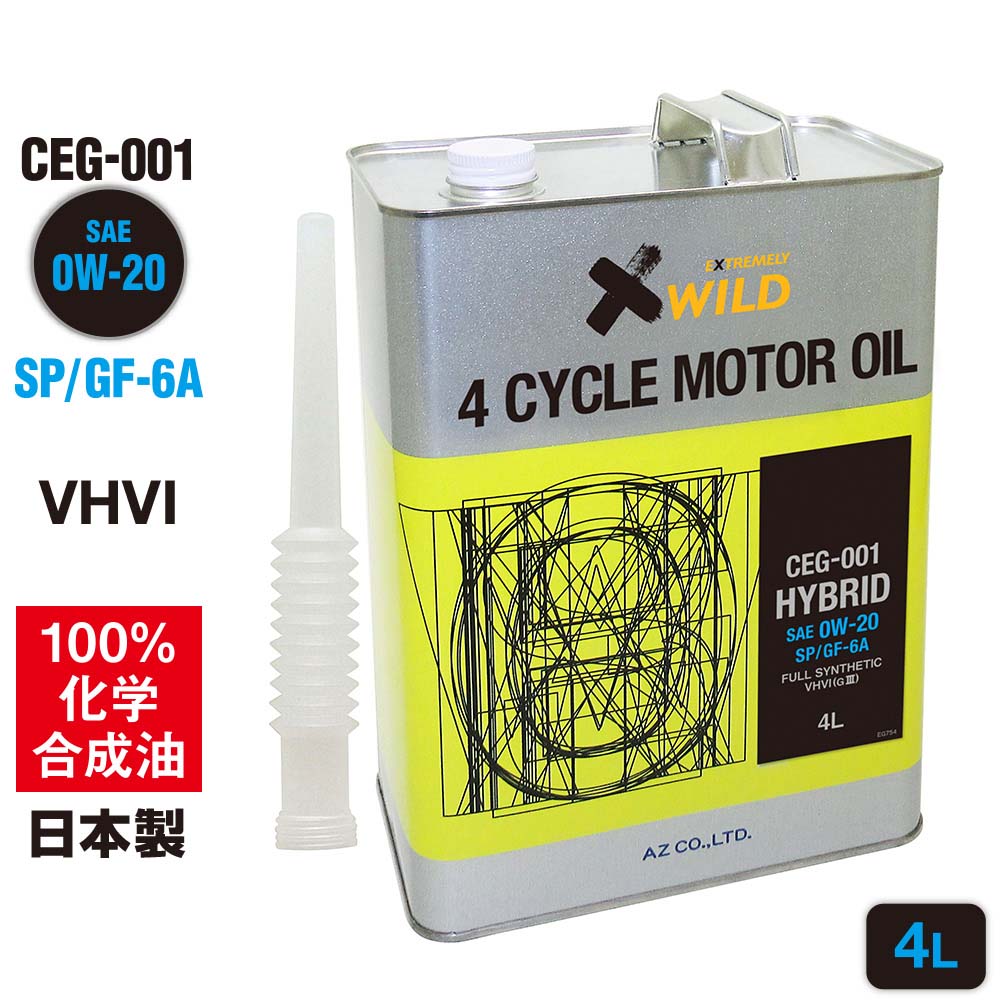 (初回限定/お一人様1個限り)AZ エンジンオイル 4L 0W-20 SP/GF-6A ガソリン車用 (CEG-001/HYBRID) モーターオイル/送料無料(北海道・沖縄・離島除く)