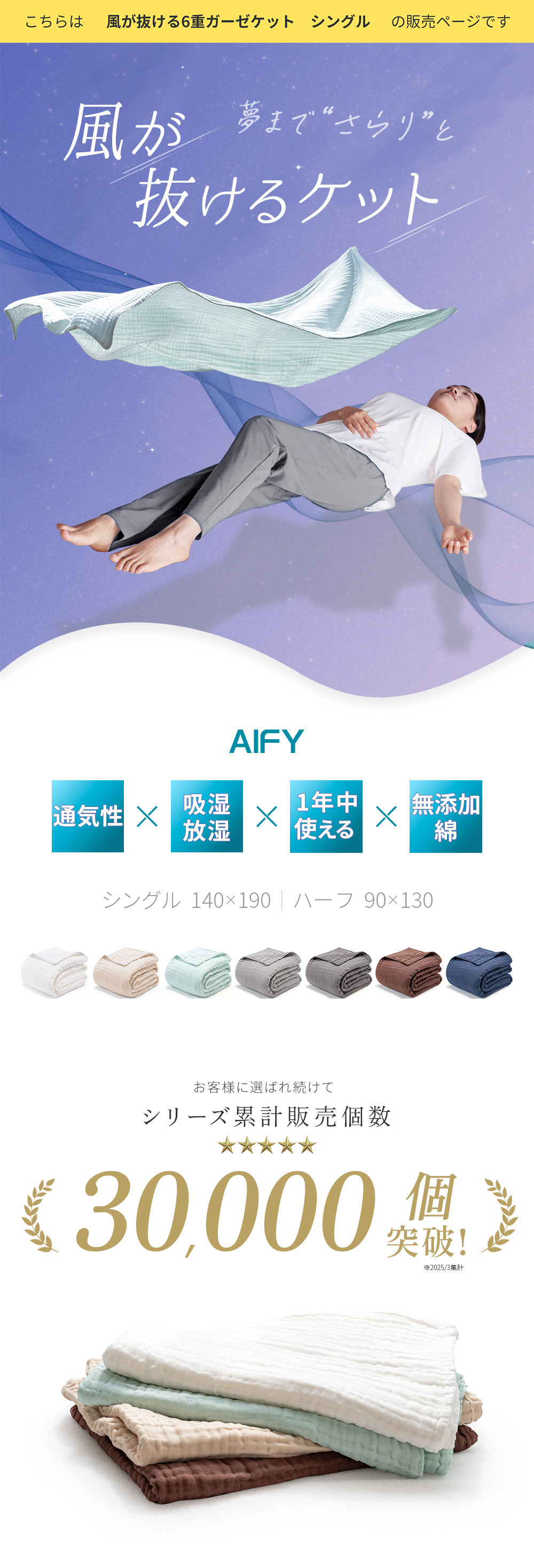 タオルケット 綿100% シングル 厚手 ガーゼケット 6重 無地 ガーゼ キルトケット 夏用 夏 140 190 ギフト プレゼント ベビー 赤ちゃん 北欧 出産祝い AIFY
