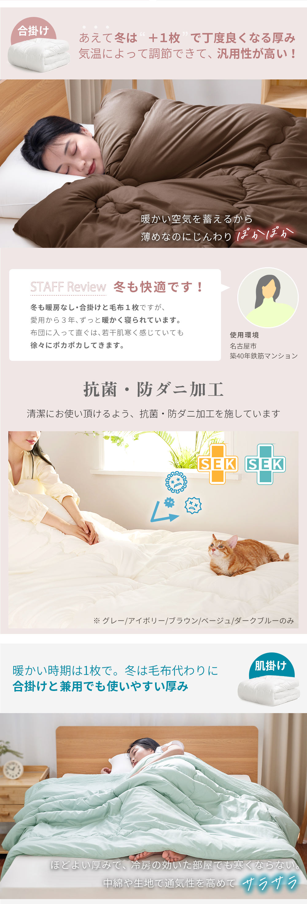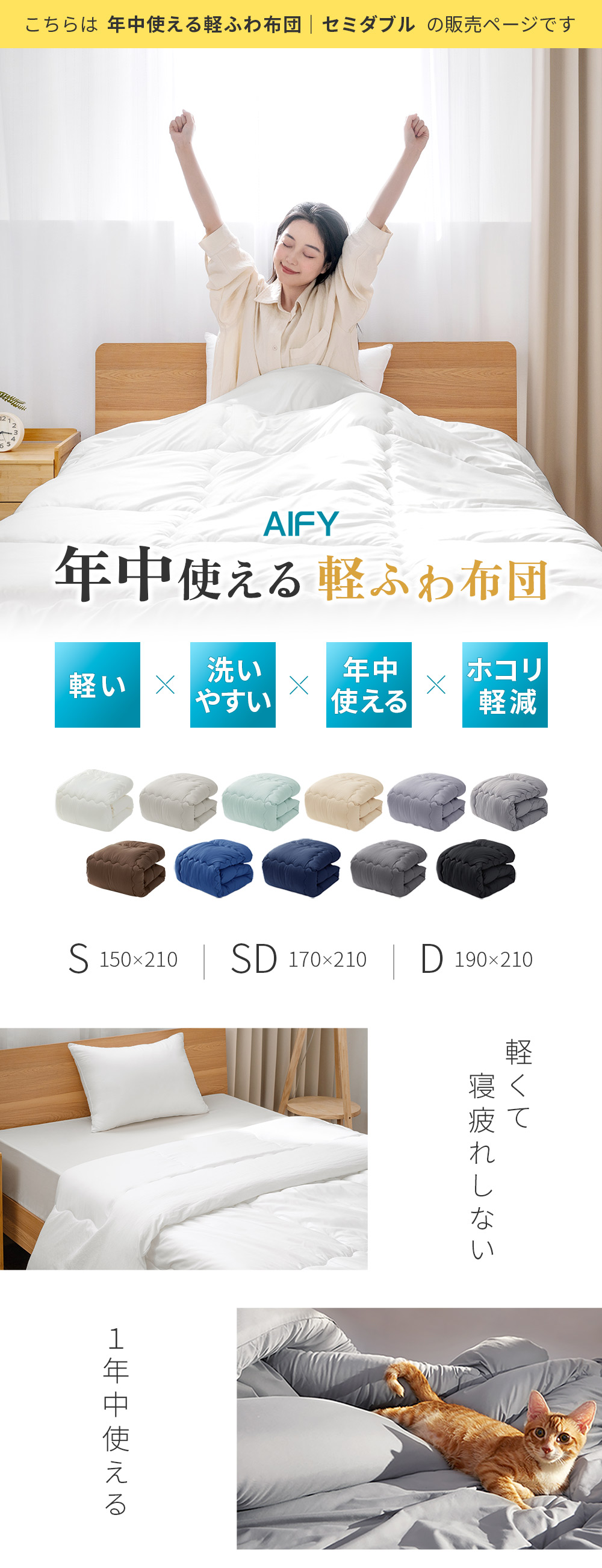 掛け布団 セミダブル 洗える 掛布団 掛けふとん 冬 肌掛け 合掛け 洗える布団 肌布団 オールシーズン 暖かい 軽い 布団 丸洗い 薄手 夏 春 秋冬 夏用 冬用 AIFY