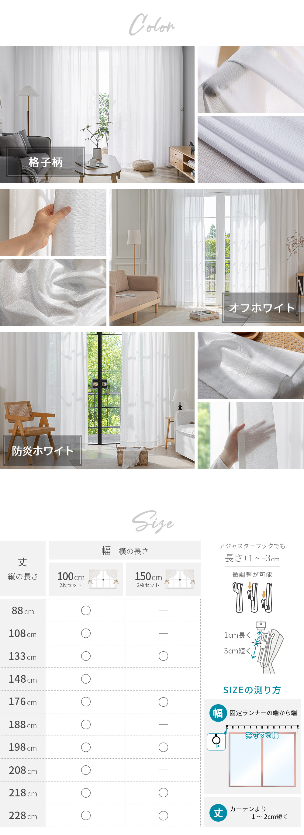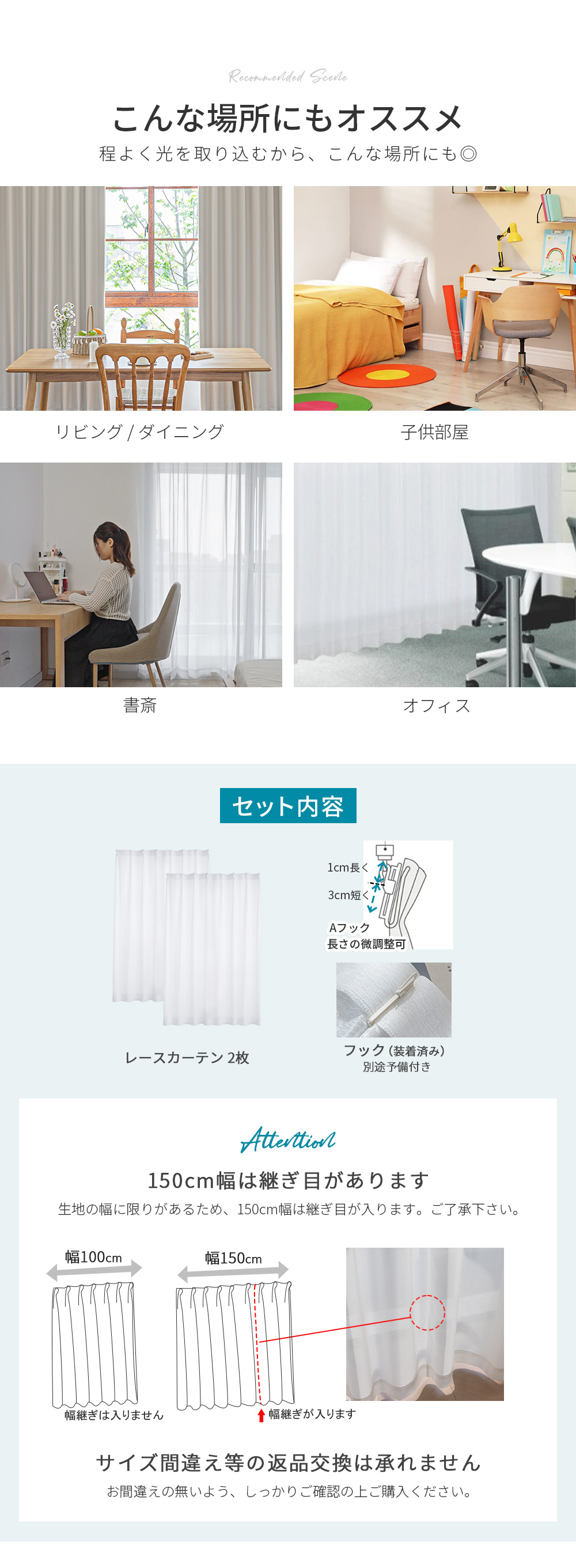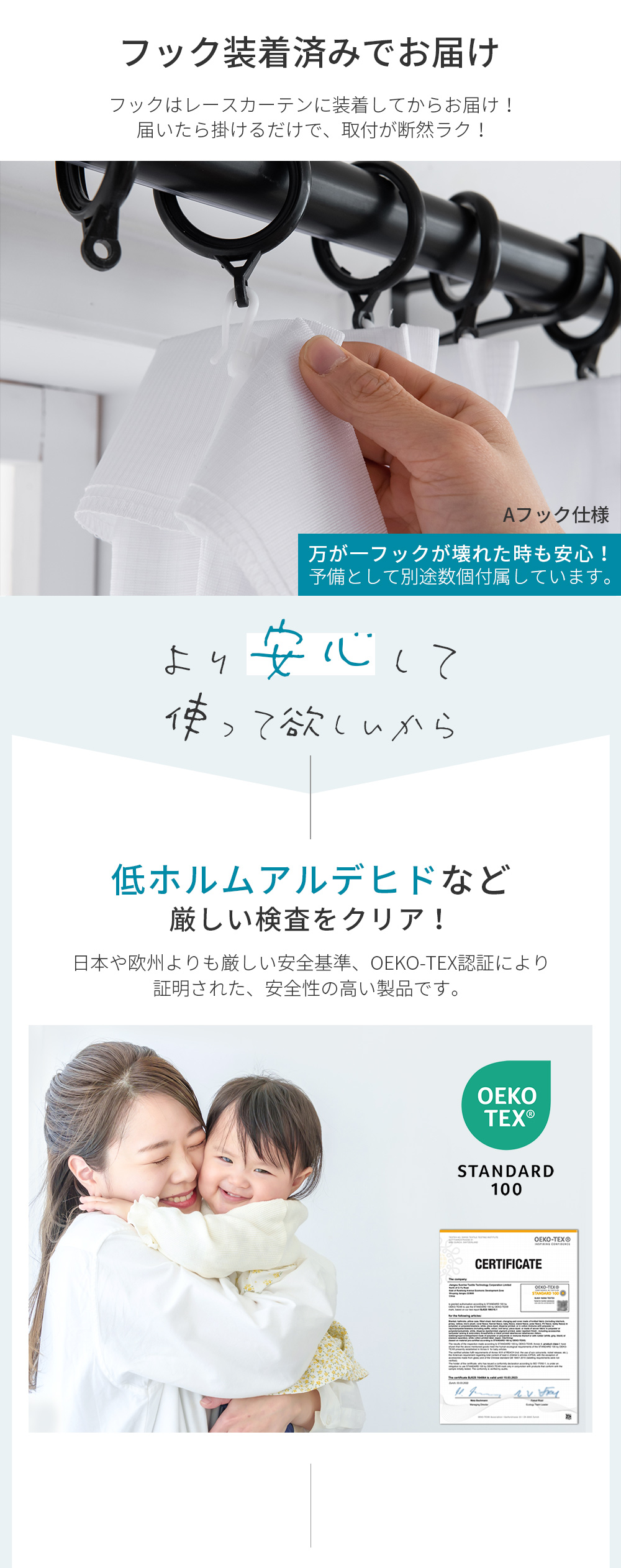 入数:レースカーテン2枚・フック(カーテン装着済)