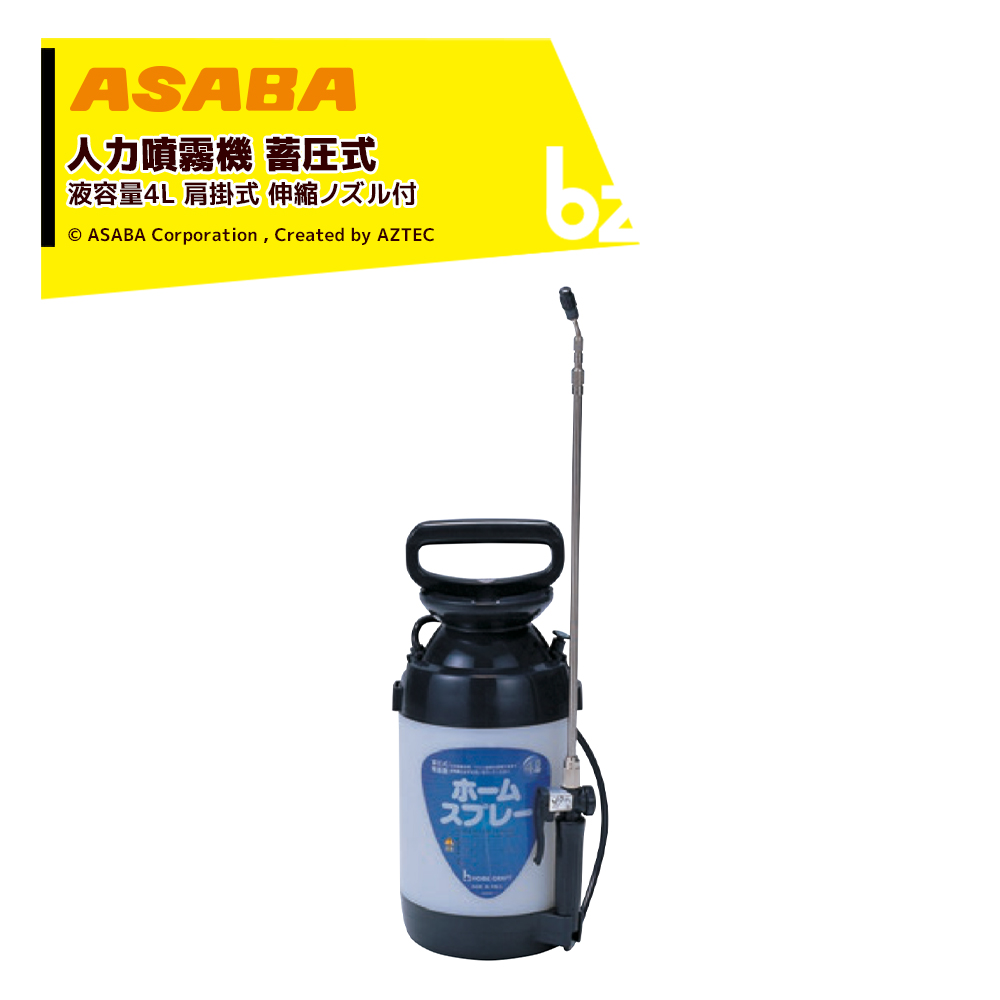 麻場 asaba 人力肩掛け式噴霧機 全自動式 蓄圧式 ホームスプレー 伸縮ノズル付 4RDHPS-3140 液容量4L 家庭菜園向け 450073290 法人様限定
