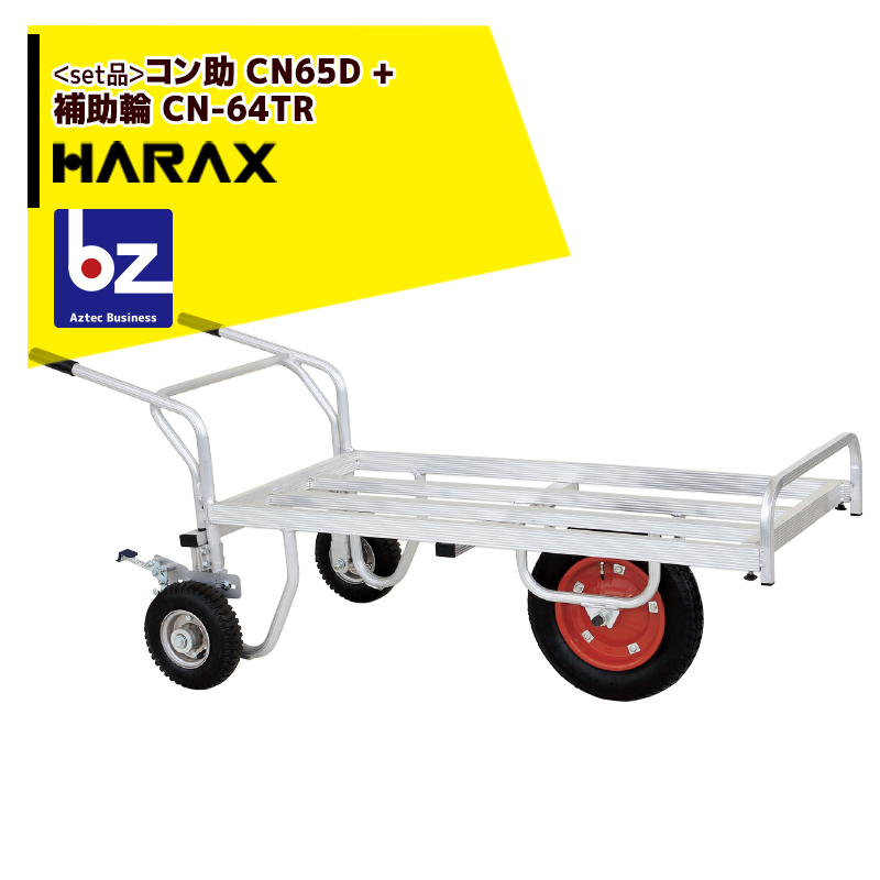 ハラックス HARAX <2台set品><セット品>アルミ一輪車 コン助 CN-65D + 補助輪 (パーキングブレーキ付) CN-64TR 法人様限定