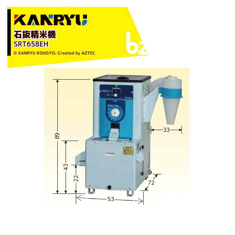 カンリウ工業 石抜精米機 石抜き 低温精米 小米取り機能付 SRT658EH 100V仕様 タンク容量玄米15kg入 法人様限定