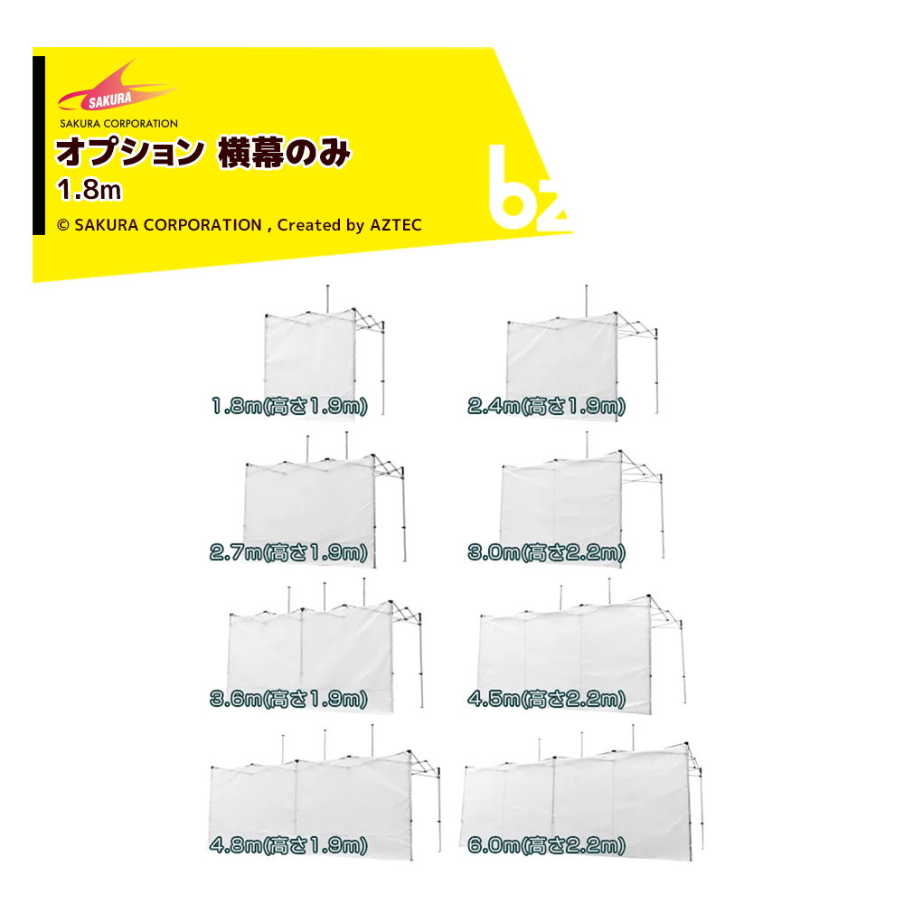 さくらコーポレーション <オプション品>かんたんテント用 横幕 オプション色 ポリエステル500D 1.8m OYM 法人様限定
