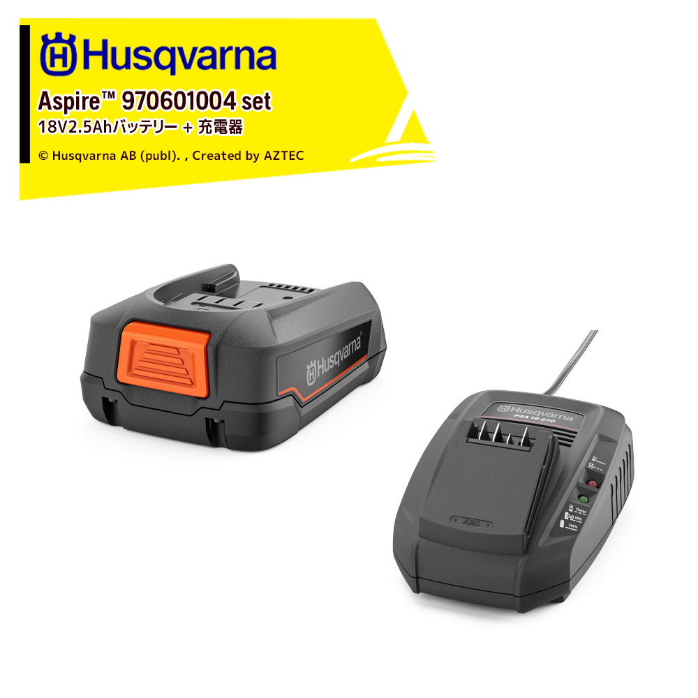 ハスクバーナ Husqvarna Aspire P4A 18-B45 2.5Ahバッテリー 970600802 + 充電器 P4A 18-C70 970601004