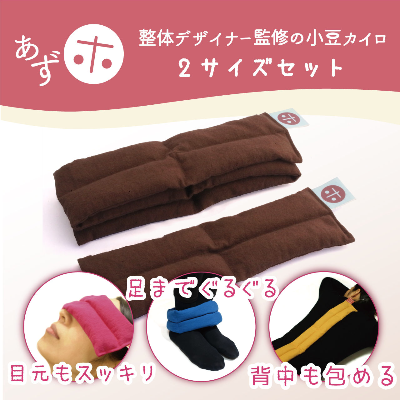 「あずホ」は当店オリジナルブランドですが、整体師かつデザイナーでもある主人が、中国へ出張中に温めた小豆袋をお腹に乗せてもらう療法を体験した事が開発の始まりです。あまりにも気持ち良かった事から、あらゆる部位に使用でき、背骨を包み込んで自律神経まで整えられる、部屋にあってもオシャレな、機能もデザインも最高のホットパックを作ろうと決心し2年以上かけて製品化しました。