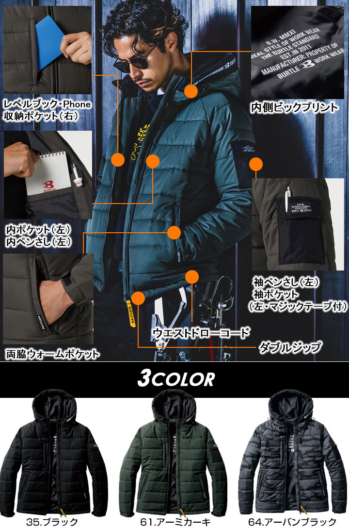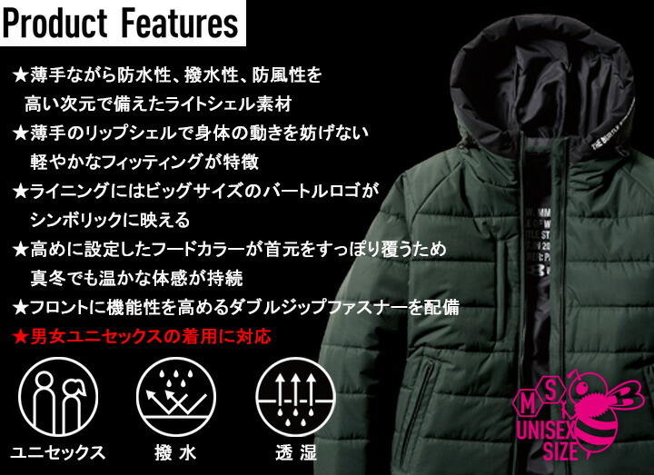 ・ライニングにはビックサイズのバートルロゴがシンボリックに映える