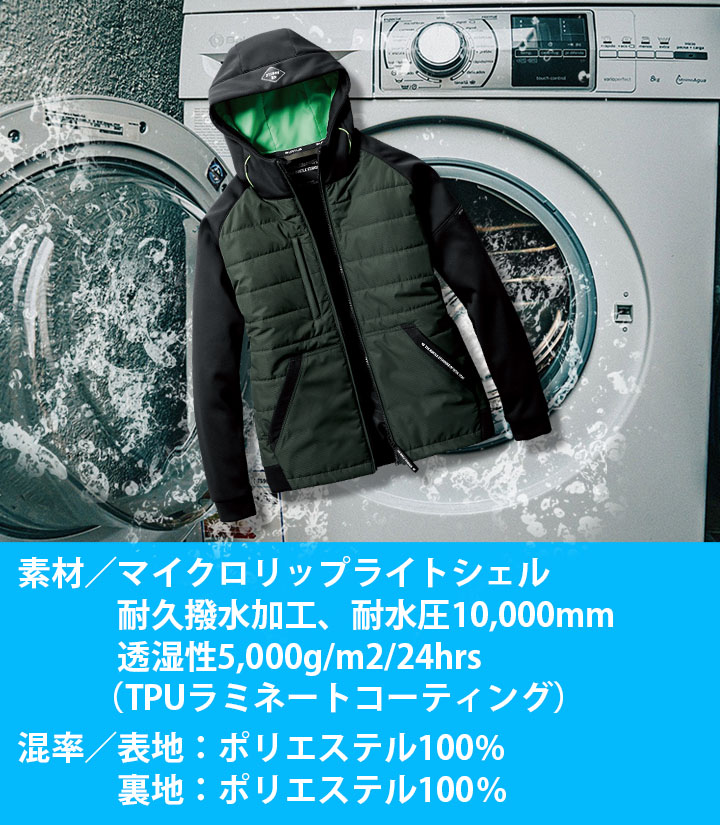 マイクロリップライトシェル、耐久撥水加工、耐水圧10,000mm