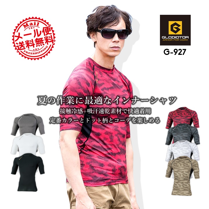 五分袖インナーウェア ドライパワーサポート コーコス G-927 半袖 男女兼用 コンプレッション 接触冷感 吸汗速乾 消臭 作業服CO-COS 4L-5L 即日発送
