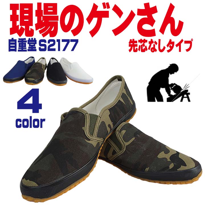 自重堂 作業靴 S2177 スリッポン 現場のゲンさん 室内外兼用 履きやすい 先芯なし 軽量 白 黒 ネイビー カモフラ 迷彩
