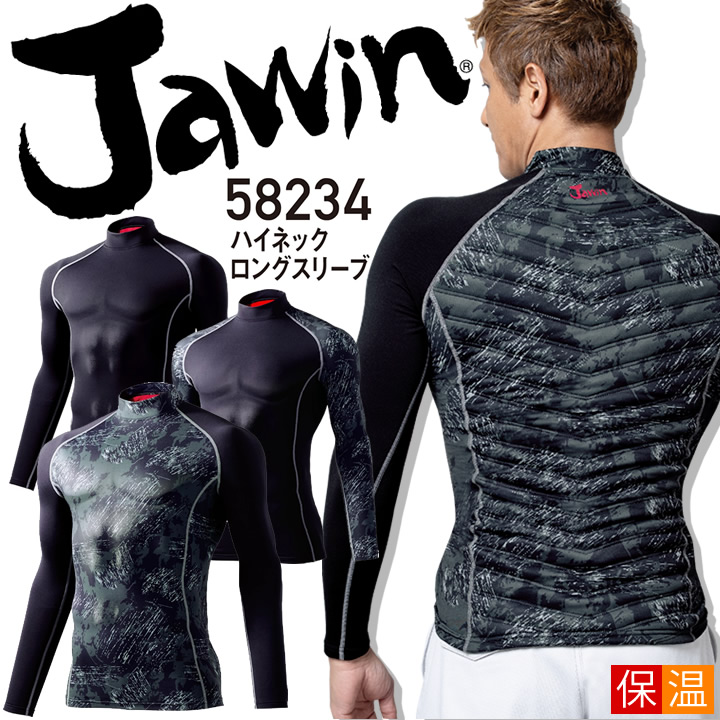 ジャウィン 冬用インナーウェア 58234 ハイネック コンプレッション 吸汗速乾 発熱 ストレッチ 消臭 抗菌 JAWIN 保温性 自重堂 アンダーシャツ 防寒