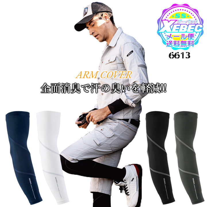 アームカバー メンズ 夏用 接触冷感 ジーベック 6613 吸汗速乾 透け防止 消臭 ストレッチ アームガード 腕カバー コンプレッション 春夏 作業服 XEBEC