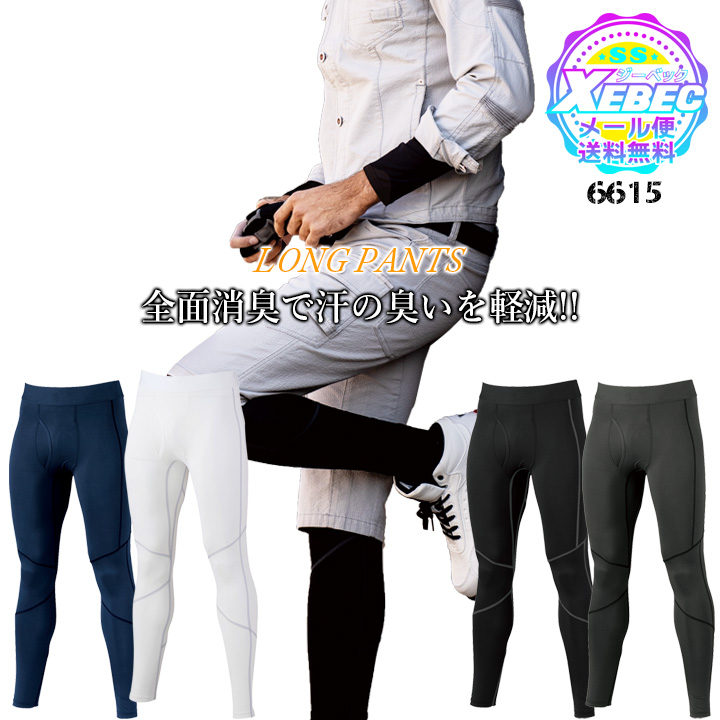 インナーパンツ レギンス メンズ 夏用 接触冷感 ジーベック 6615 吸汗速乾 透け防止 消臭 ストレッチ アンダーパンツ コンプレッション 春夏 作業服 XEBEC