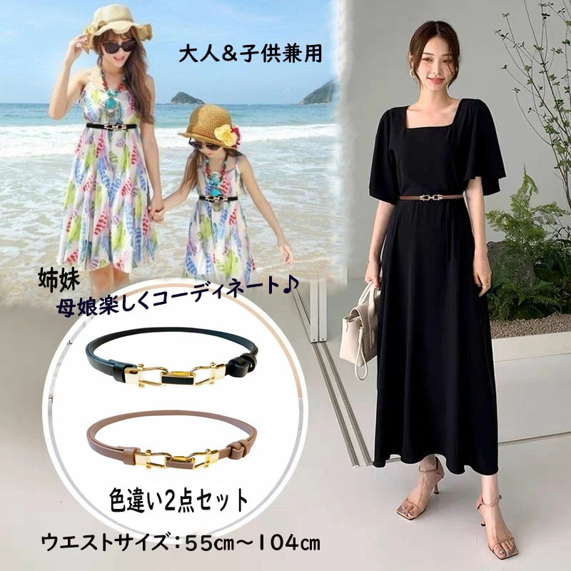 ベルト レディース キッズ 子供 女の子 2点セット ウエストマーク ドレスベルト 母の日 簡単 ワンピース用 スカート用 細め 細い スライドベルト フック式