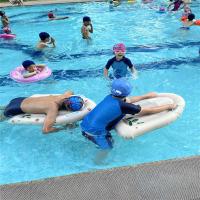 ▼「エアービート板」は、プールや川での遊びを一層楽しむための必需品です。この軽量で持ち運びやすいビート板は、どこへでも簡単に持って行けるため、家族のお出かけに最適。