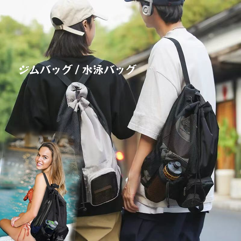 ナップサック ジムサック 撥水 軽量 大容量 ネット付き シンプル プールバッグ シューズ収納 バッグ 多機能 水泳 部活 運動 旅行 アウトドア適用 爆買