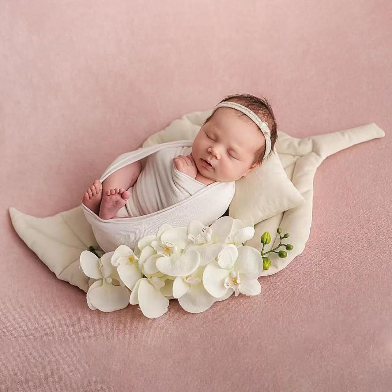 百日お祝い 葉っぱの形のシート 枕 寝相アート ベビー ニューボーンフォト 100日 写真撮影グッズ 赤ちゃん 自宅撮影 小道具 新生児 写真撮影 記念撮影