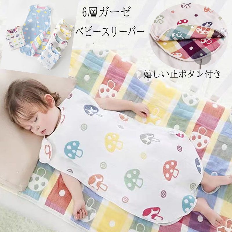 ガーゼスリーパー 寝袋 パジャマ 赤ちゃん ベビー ねぶくろ スリーパー 子供 キッズ 100 110 120 Lサイズ 6層 ガーゼ コットン 通年素材 冷え対策