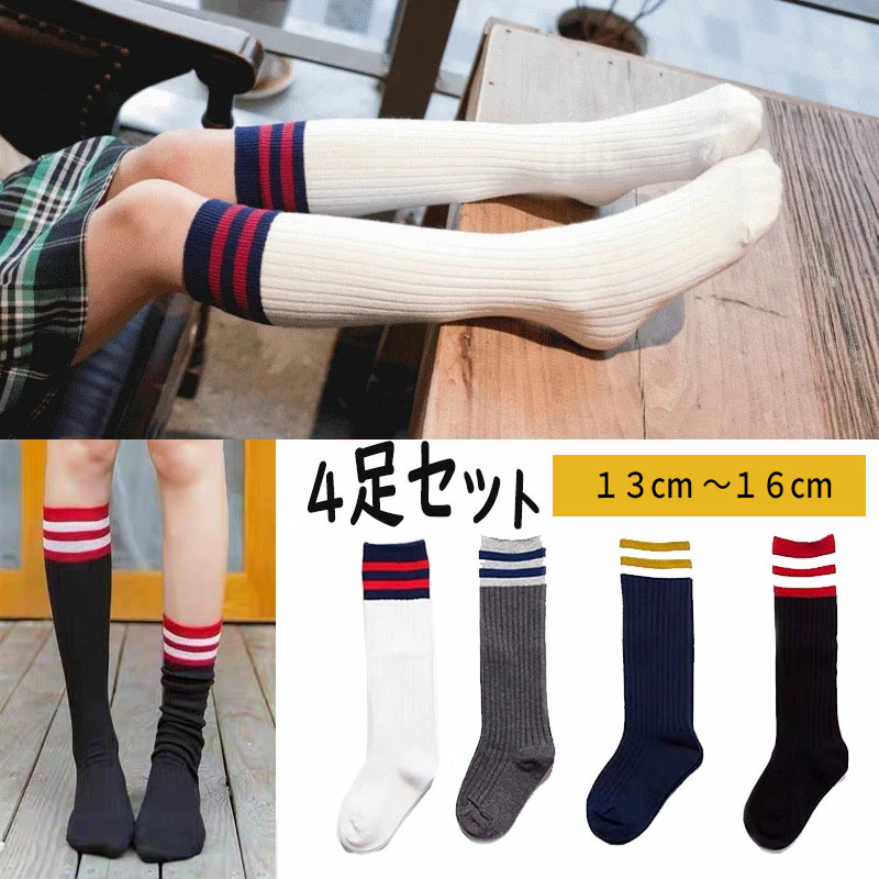 靴下 子供 キッズ ハイソックス 13 14 15 16 くつした 4足セット 入園 卒園 結婚式 おしゃれ 発表会 ソックス 男の子 女の子 厚め ホワイト グレー ブラック